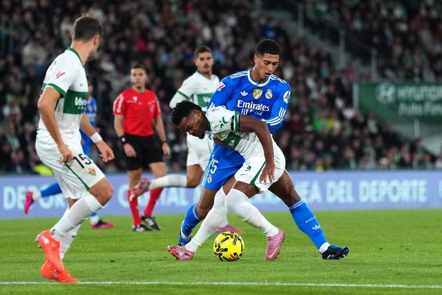 此役客场对阵埃尔切,首发出战的贝林厄姆在比赛第78分钟助攻赫伊森破门,随后自己打入一球,帮助皇马2-2战平对手。