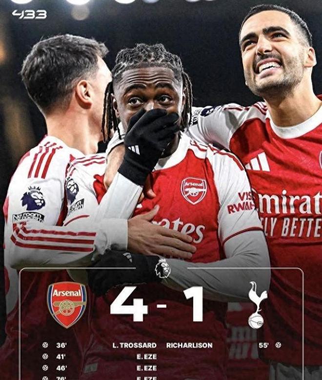 此役在酋长球场进行,埃贝雷奇·埃泽上演帽子戏法,成为全场最大功臣。凭借这场胜利,阿森纳领先第二名切尔西6分,对曼城的优势也扩大到7分。更令人印象深刻的是,他们不仅赢球,而且赢得极具统治力——目前拥有联赛最佳防线,进攻效率也足以与曼城比肩。